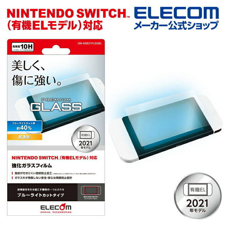 商品名 | エレコム NINTENDO SWITCH 有機EL モデル 専用 ガラスフィルム ZEROSHOCK ブルーライトカット 任天堂スイッチ 有機el 液晶保護 フィルム┃GM-NSE21FLGGBL |