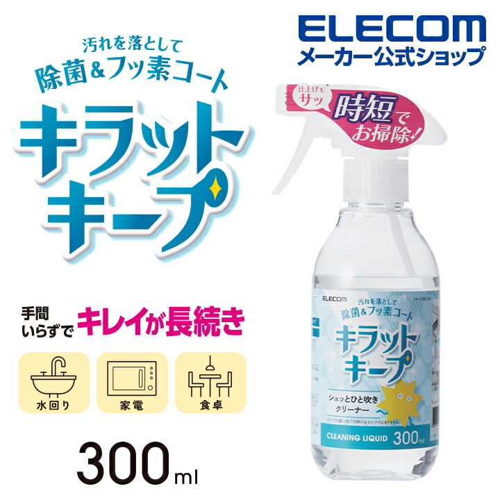 商品名 | エレコム 汚れを落として 除菌 & フッ素コートキラットキープ クリーナー 液体 除菌 汚れ落とし フッ素コート 時短 300ml┃HA-CKKC300 |