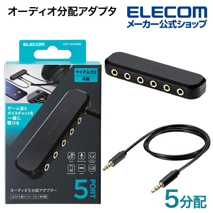 商品名 | エレコム オーディオ分配アダプタ 5分配 オーディオ 分配 アダプタ ケーブル付 ブラック┃EHP-35AD05BK |