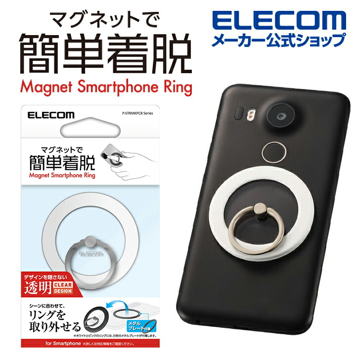 商品名 | エレコム マグネット スマホリング メタルプレート付属 マグネット 着脱 リング クリア ホワイト┃P-STRMKPCRWH |