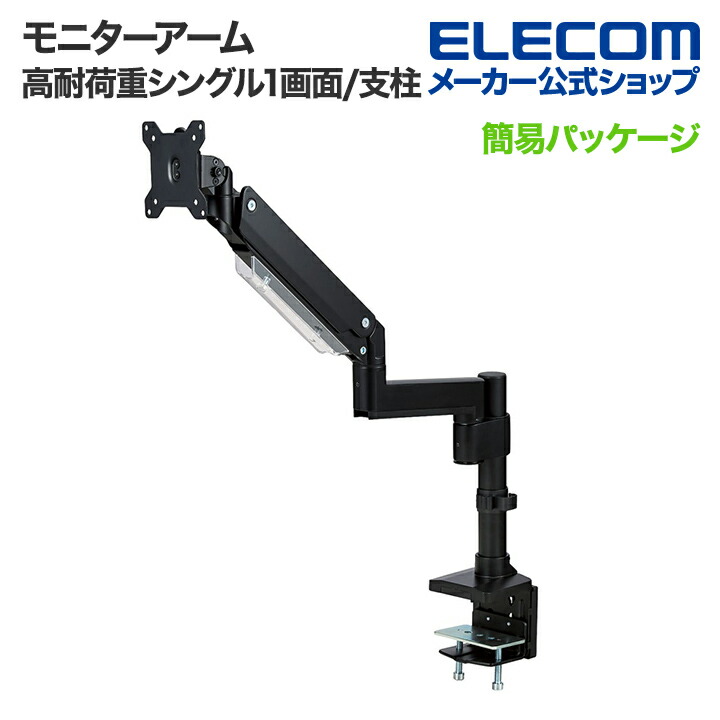 商品名 | エレコム モニターアーム ディスプレイアーム 高耐荷重 支柱 1画面 1台 シングル 液晶 モニター PCモニター 17?32インチサイズ対応┃DPA-SS10BK |