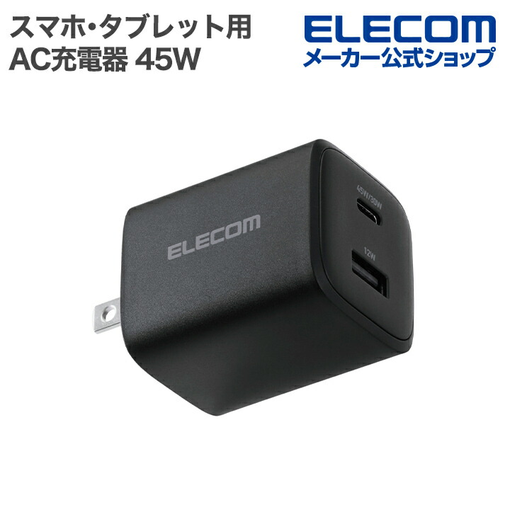 ■スマホ2台を同時に充電できる!USB Type-C(TM)ポートとUSB-Aポートを搭載したAC充電器です。USB Power Delivery 45Wの高出力で、スマートフォン2台を同時に接続したり、MacBook Airなどのモバイルノートパソコンを充電したりすることが可能。さまざまなシーンで活躍する1台です。 特徴■USB Type-C(TM)ポートとUSB-Aポートを搭載し、対応するスマートフォン・タブレット・ノートパソコンなどを充電できるAC充電器です。 ■USB Power Delivery 45Wで充電可能。MacBook Airなどの対応するノートパソコンや、iPadなどのタブレットも充電できます。 ■iPhoneなどのスマートフォンを2台同時に充電できるモデルです。 ■※2ポート同時接続時の出力は合計最大42Wとなります。 ■GaN II(窒化ガリウム)を採用し、高出力ながらコンパクトサイズを実現しています。 ■プラグ部分を折り畳むこともできるため、ポケットや小さなバッグにも収まります。普段のお出かけ、ビジネスでの外出やリモートワーク、旅行など幅広いシーンで使えます。 ■MacBook付属のUSB-C - MagSafe 3ケーブルも使用可能。MacBookの充電をスムーズに行えます。 ■USB Power DeliveryおよびPPS規格に対応。機器に応じて電圧、電流が変化するため、スマートフォンやタブレットはもちろん、Windowsノートパソコンまで幅広く充電できます。 ■※USB Power Deliveryとは、アダプターと接続機器間で情報をやり取りすることで、その機器間における最適な電力を選択し、高速充電を実現するUSB規格です。PPS(Programmable Power Supply)とは、0.02V単位で電圧を調整し、最適な電力で効率的に供給することができるUSB Power Deliveryのオプション規格です。 ■※本製品のUSB Power Delivery最大出力は45Wです。PPS(Programmable Power Supply)最大出力は45Wです。 ■本製品はUSB-IFのテストと同等のテストを当社独自で実施し、USB Power Delivery対応製品との高い互換性が保たれています。 ■電気用品安全法(PSE)認証品です。また、当社独自のテストを実施した、高い安全性が確認された製品になります。 ■電気用品安全法の耐トラッキング性の要求事項を満たしたコンセントプラグを採用しています。 ■※充電ケーブルは同梱していません。別途ご用意ください。 ■※機器本体や充電器が濡れた状態で充電すると、異常な発熱・焼損の原因となり大変危険ですのでおやめください。 ■※USB Type-C and USB-C are trademarks of USB Implementers Forum. ■自社環境認定基準を1つ以上満たし、『THINK ECOLOGY』マークを表示した製品です。 ■廃棄物削減に取り組み、製品に同梱する取扱説明書等をペーパーレス化した製品です。 ■環境保全に取り組み、製品の包装容器におけるプラスチック重量を、社内基準製品より20%以上削減した製品です。 ■環境保全に取り組み、製品の包装容器が紙・ダンボール・ポリ袋のみで構成されている製品です。 ■環境保全に取り組み、製品本体の主たる構成部品や構成要素の原料に占めるリサイクル原料の割合が10%を超えている製品です。 仕様■対応機種:USB Type-C(TM)ポートからUSB Power Delivery 45WおよびPPS(Programmable Power Supply)45W、またはUSB-Aポートから12Wの規格内で充電が可能な機器。2ポート同時接続時、合計最大42Wまでの出力で充電・給電可能な機器とその組み合わせ■コネクター形状:USB Type-Cポート×1、USB-Aポート×1 ■定格入力電圧:AC100〜240V、50/60Hz ■定格入力電流:1.8A ■定格出力電力:単独接続時:USB Type-Cポート最大出力45W、PPS最大出力45W、USB-Aポート最大出力12W、2ポート同時接続時:合計最大出力42W、USB Type-Cポート最大出力30W、PPS最大出力30W、USB-Aポート最大出力12W ■定格出力電圧:[単独接続時]USB Type-Cポート:5V/9V/12V/15V/20V、PPS出力5〜11V、USB-Aポート:5V、[2ポート同時接続時]USB Type-Cポート:5V/9V/12V/15V/20V、PPS出力5〜11V、USB-Aポート:5V ■定格出力電流:[単独接続時]USB Type-Cポート:5V/9V/12V/15V時3A、20V時2.25A、PPS出力5〜11V時4.5A、USB-Aポート:5V時2.4A、[2ポート同時接続時]USB Type-Cポート:5V/9V時3A、12V時2.5A、15V時2A、20V時1.5A、PPS出力5〜11V時2.7A、USB-Aポート:5V時2.4A ■外形寸法:幅約47mm×奥行約37mm×高さ約37mm ■重量:約110g ■カラー:ブラック ■コンセントプラグ仕様:90度スイング構造 ■使用温度:0℃〜25℃ ■法令:◇PSE 特定電気用品 ■保証期間:1年間 |