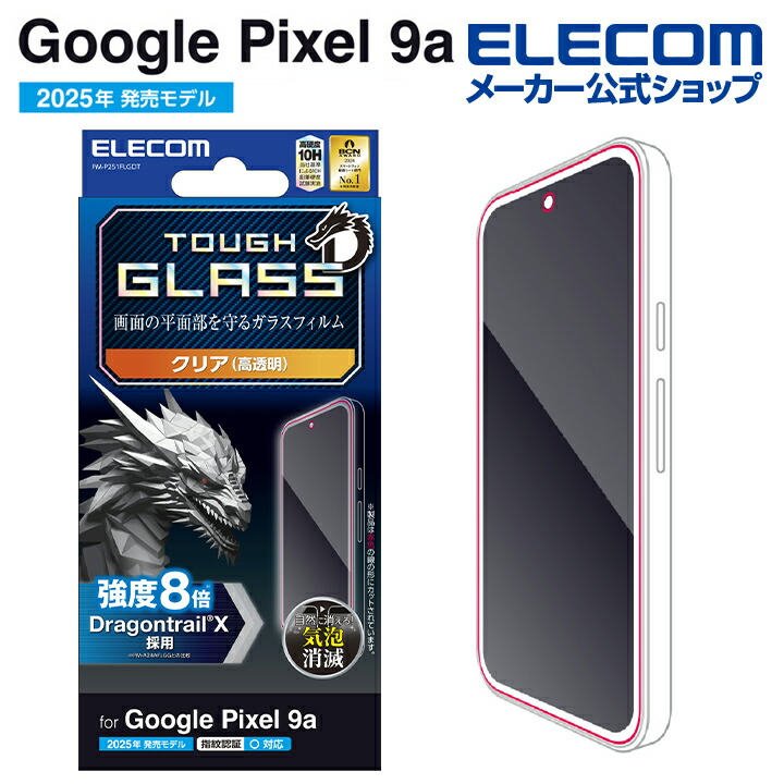 ■強度、耐傷性、質感のすべてにおいて優れた性質を持つ革新的なガラス“Dragontrail(R)X”を採用。 通常のガラスに比べ8倍の強度を誇る旭硝子社製特殊ガラス“Dragontrail(R)X”を使用した高透明タイプの画面保護ガラスフィルムです。 特徴■圧倒的な強度を誇る、旭硝子社製特殊ガラス“Dragontrail(R)X”を使用した高透明タイプの画面保護ガラスフィルムです。 ■表面硬度10Hの強化ガラス採用により、保護ガラス表面の傷を防止します。 ■※表面硬度は実力値です。 ■フィルムを装着した状態でも、画面内指紋認証に対応します。 ■※フィルムを装着した状態で画面内指紋認証機能を利用する場合は、装着した状態で指紋の再登録を行ってください。 ■特殊な飛散防止設計により、万が一割れてしまった際にもガラス片が飛散することなく、高い安全性を実現しています。 ■指紋・皮脂汚れが付きにくく、残った場合でも簡単に拭き取れる指紋防止加工を施しています。 ■握ったときやかばんから取り出すときにも引っかかりにくいように、エッジに丸みをもたせた「ラウンドエッジ加工」を施しています。 ■貼り付け面にシリコン皮膜をコーティングし、接着剤や両面テープを使わずに貼り付け可能な自己吸着タイプです。貼りやすく、貼り直しも可能です。 ■時間の経過とともに気泡が目立たなくなる、特殊吸着層を採用したエアーレスタイプです。 ■端末の形状に合わせたサイズにカット済みなので、パッケージから取り出してすぐに使用可能です。 ■フィルムがキレイに貼れる、クリーニングクロス、ホコリ取りシールが付属しています。 ■自社環境認定基準を1つ以上満たし、『THINK ECOLOGY』マークを表示した製品です。 ■廃棄物削減に取り組み、製品に同梱する取扱説明書等をペーパーレス化した製品です。 ■環境保全に取り組み、製品の包装容器において、原料に占める石油系プラスチック代替原料の割合が10%を超えている製品です。 仕様■対応機種:Google Pixel 9a■セット内容:画面保護フィルム(Dragontrail(R)Xガラス・高透明タイプ)×1、クリーニングクロス(乾式)×1、ホコリ取りシール×1 ■材質:接着面:シリコン、外側:ガラス・PET |