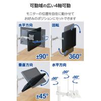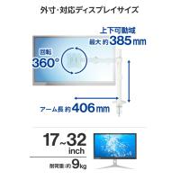 ■モニターの位置を自由に調節でき、デスクのスペースを有効活用!17〜32インチまでのモニターに対応する、ロングアームタイプのシングルモニターアーム。モニターからのケーブルをすっきりまとめることができる、ケーブルホルダー付きです。 特徴■17インチから32インチのモニターに対応する、モニター用アームです。 ■モニター下のスペースを有効活用して、デスクの上を広く使うことができます。 ■モニターの位置を自在に動かせて、お好みのポジションにセットできます。 ■モニターを1台設置できるシングルアームタイプです。 ■可動域の広い4軸可動のロングアームタイプです。 ■モニターからのケーブルをすっきりまとめることができる、ケーブルホルダー付きです。 ■VESA規格(75mm×75mm、100mm×100mm)に準拠したモニターに対応しています。 ■モニター背面にVESAマウントを取り付け、モニターアーム取付部に上から差し込みネジで固定してからご使用ください。 ■デスクの天板に挟んで固定するクランプ式と、天板に穴を開けてボルトを通して固定するグロメット式の2通りの取り付け方法が選べます。 ■モニターの使用角度が決まったら、接続部のネジをしっかりと締めて固定してください。 ■付属の六角レンチは、ポール用ケーブルホルダーに掛けて保管できます。 ■自社環境認定基準を1つ以上満たし、『THINK ECOLOGY』マークを表示した製品です。 ■環境保全に取り組み、製品の包装容器が紙・ダンボール・ポリ袋のみで構成されている製品です。 仕様■対応サイズ:17〜32インチ■耐荷重:約9.0kg ■外形寸法:幅約114mm×奥行約490mm×高さ約540mm ※突起部、クランプノブを含まず ■質量:約2.1kg ■カラー:ホワイト ■セット内容:ポール×1、アーム×1、クランプ用下パーツ×1、クランプ用上パーツ×1、VESAプレート×1、台座×1、グロメット用プレート×1、アーム先端パーツ×1、アーム用ケーブルホルダー×2、ポール用ケーブルホルダー×1、VESAプレート固定ネジ×1 ■セット内容2:M8×20皿ネジ(×1)、M8×45ネジ(×1)、六角レンチ(5mm)×1、M4×12ネジ(×4)、M4×16ネジ(×4)、M5×12ネジ(×4)、M5×16ネジ(×4)、D5ワッシャー(×4)、スペーサー×4、取扱説明書×1 ■材質:スチール、ABS ■取り付け画面数:1画面 ■固定方式:クランプ式/グロメット式 ■軸数:4軸 ■ガススプリング:- ■対応規格:VESA規格(75mm×75mm、100mm×100mm) ■可動範囲:パン:左90度/右90度、ローテーション:360度、チルト:上45度/下45度 ■取り付け可能天板厚:クランプ:10〜80mm、グロメット:10〜40mm |