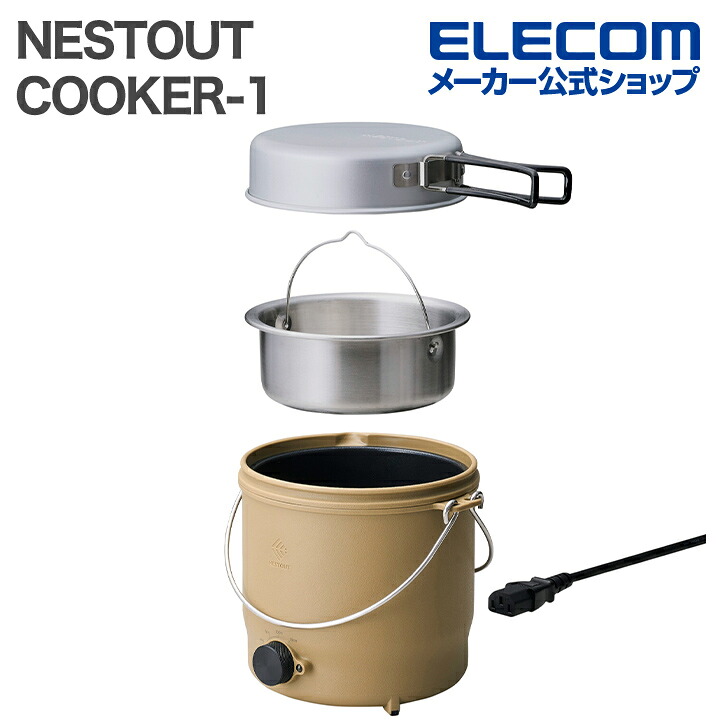 ■アウトドアでマルチに使える電気調理器です。お湯を沸かすほか、お米の炊飯、ラーメンやおでんなどさまざまな調理に対応します。消費電力が少ないため、多くのポータブル電源で使用できます。火を使わず、一酸化炭素(CO)も発生しないため、テント内や車内でも安心です。 ※ポータブル電源は別途ご用意ください。 特徴■アウトドアに特化したブランド NESTOUT(ネストアウト)の電気調理器“COOKER-1”です。 ■アウトドア用に開発された“COOKER-1”は、収納ケースが付属していて持ち運びがしやすく、屋外でも扱いやすい設計です。省電力仕様のため、さまざまなポータブル電源に対応できます。キャンプや車中泊でも使いやすいデザインです。 ■スープやシチュー、インスタントラーメンを煮る、ご飯を炊く、肉まんを蒸すなど、煮る・炊く・蒸すを行う、3つの温度設定と炊飯というシンプルで使いやすい4つの動作モードを搭載しました。 ■ガスや焚き火、炭火での調理は一酸化炭素中毒や火災の危険がありますが、“COOKER-1”は一酸化炭素が発生せず火も使いません。テント内や車内でも安全に調理でき、小さなお子様やペットがいる場合も安心です。 ■45℃・70℃・100℃の3段階の温度設定と炊飯、計4つの動作モードをダイヤルで選ぶだけ。シンプル操作で調理できます。 ■容量は最大800mlでお米は最大1.5合炊くことができます。1〜2人前の調理ができます。 ■[調理にかかる時間と消費電力の目安]湯沸かし(300ml):約5分/約35Wh、炊飯(1合):約40分/約85Wh ■※数値は参考値です。使用する機器の状態や使用状況により変わります。 ■コンセントにプラグを挿してダイヤルを回すだけなので、準備や後片付けも素早く楽にできます。 ■断熱構造で内釜への直接接触を防ぎ、本体表面の高温化を抑えます。本体にうっかり触れてもやけどしにくく、安心して使えます。 ■※本体にうっかり触れてもやけどしにくいですが、調理中や調理後はふたが熱くなります。使用中は高温部に触れないようにしてください。 ■内釜には調理用目盛り(蒸し・炊飯)と容量目盛りを刻印しています。 ■調理や保温の終了・切り替えなどをランプと音でお知らせします。 ■3点脚で設置するため、多少の凹凸がある場所でもぐらつきにくい設計です。 ■※極端な傾斜や不安定な場所では使用しないでください。 ■滑り止めのローレット加工を施した金属製の操作ダイヤルや、ふたを皿として使える仕様など、細部までこだわったデザインでアウトドアギアの所有欲を満たします。キャンプシーンに合わせやすい2色をラインアップ。 ■アルミ製のふたは側面に折りたたみ式取っ手付き。裏返すと、シェラカップのような皿として使えます。 ■内釜の内側にフッ素樹脂コートを採用。中身がこびりつきにくく、ラクに洗えます。 ■付属の専用ケースには、通気性とクッション性に優れたメッシュ素材を採用しています。本体を保護しながら、清潔に保てます。 ■本体は軽量で扱いやすく、2つの本体ハンドルで調理後の持ち運びもスムーズにできます。 ■電源コードは長さ約1m。キャンプ時などに取り回ししやすいコード長を採用しています。 ■防塵のため、電源差込口には電源カバーを備えています。 ■日本の電気用品安全法(PSE)の技術基準に適合した安全性の高い製品です。 ■※使用時は水平な場所に設置し、周囲の状況に注意のうえ、取扱説明書に従って安全に使用してください。 ■※本製品は内釜が外れない本体一体型です。 ■※本体の丸洗いはできません。外側をぬらさないように注意し、内釜を薄めた台所用中性洗剤で洗ってから、よくすすいで使用してください。 仕様■電源:AC100V 50Hz/60Hz■定格消費電力:500W ■サイズ:幅約173mm×奥行約166mm×高さ約169mm ※蒸し皿除く ■有効内寸:内釜:直径約129mm×高さ約62mm、蒸し皿:直径約118mm×高さ約49mm、ふた:直径約128mm×高さ約35mm ■質量:約895g ※電源コード含む ■容量:800ml ■カラー:サンドベージュ ■電源コード長:約1.0m ■保証期間:1年間 ■付属品:ふた、専用ケース、電源コード用ケース、蒸し皿、電源コード、取扱説明書 ■機能:45℃/70℃/100℃切り替えモード、炊飯モード ■安全装置:サーモスタット、温度ヒューズ(290℃) ■温度設定範囲:45℃、70℃、100℃ ■時間設定範囲:各モード1時間後にOFF ■保温機能:あり:設定温度を1時間維持 |