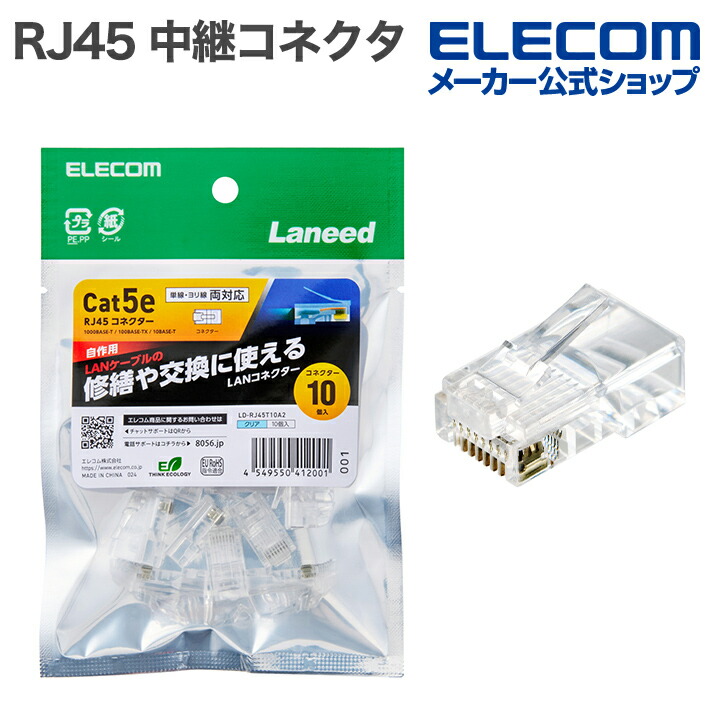 ■Cat5e用のRJ45コネクター10個入りです。単線・ヨリ線の両方に対応しているので、手持ちの材料を有効活用して必要な長さのケーブルを自作する際に活躍します。 特徴■LANケーブルの自作に。Cat5e用のRJ45コネクター10個入りです。 ■Cat5eの単線ケーブルおよびヨリ線ケーブルの両方に対応しています。 ■サビに強く信号劣化の少ない金メッキピンを採用しています。 ■適合するカシメ工具は、LD-KKTR、LD-KKTP2、LD-KKTA2です。 ※別売品 ■適合ケーブルは、[Cat5e長尺LANケーブル/単線]LD-CT2/BU100/RS、LD-CT2/BU300/RS、LD-CT2/DG100/RS、LD-CT2/DG300/RS、LD-CT2/DR100/RS、LD-CT2/DR300/RS、LD-CT2/LB100/RS、LD-CT2/LB300/RS、LD-CT2/PU100/RS、LD-CT2/PU300/RS、LD-CT2/LG100/RS、LD-CT2/LG300/RS、LD-CT2/WH100/RS、LD-CT2/WH300/RS、[Cat5e長尺LANケーブル/ヨリ線]LD-CT2/BU100YR、LD-CT2/BU300YRです。 ※別売品 ■EUの「RoHS指令(電気・電子機器に対する特定有害物質の使用制限)」に適合(10物質)した、環境にやさしい製品です。 ■自社環境認定基準を1つ以上満たし、『THINK ECOLOGY』マークを表示した製品です。 ■環境保全に取り組み、製品の包装容器が紙・ダンボール・ポリ袋のみで構成されている製品です。 仕様■規格:Cat5e(1000BASE-T/100BASE-TX/10BASE-T)■インターフェース:RJ45コネクター ■仕様:単線・ヨリ線の両対応 ■対応ケーブル太さ:約5.1mm ■絶縁体外径:約1.0mm ■シールド:×(UTP仕様) ■カラー:クリア ■入り数:10個 ■パッケージ形態:袋+シール ■環境配慮事項:EU RoHS指令適合(10物質)、THINK ECOLOGYマーク |