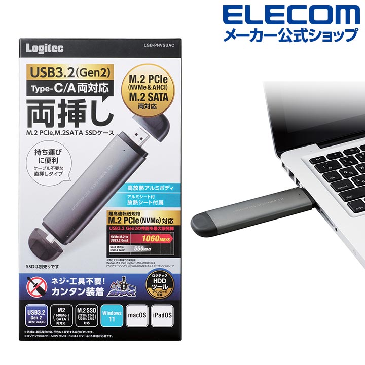 商品名 | USB3.2(Gen2 対応 M.2 SATA & NVMe SSDケース M.2 NVMe SSD ケース Type-C対応 タイプC 直挿し グレイ┃LGB-PNVSUAC ロジテック |