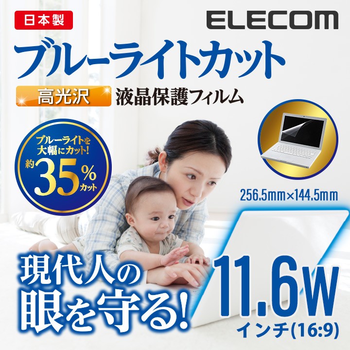 商品名 | エレコム 液晶保護フィルム ブルーライトカット 高光沢 日本製 11.6Wインチ(16:9) 256.5mm×144.5mm 11.6インチワイド┃EF-FL116WBLGN |