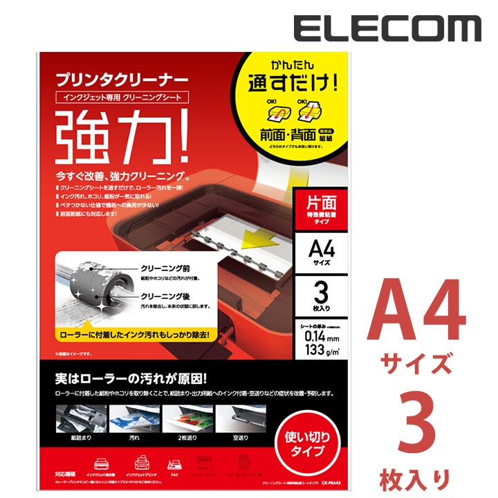 商品名 | エレコム プリンタクリーニングシート A4サイズ3枚入り A4サイズ 3枚入り ┃CK-PRA43 |