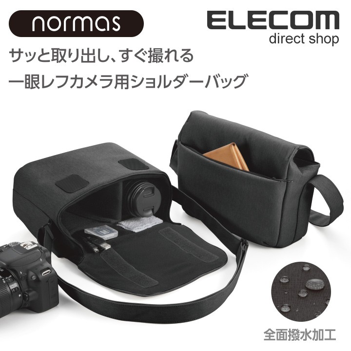 商品名 | エレコム カメラバッグ normas ノーマス ミラーレス 一眼レフ カメラ 用 カメラ ショルダー バッグ 全面撥水加工 ブラック ブラック┃DGB-S031BK |