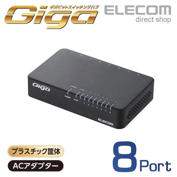商品名 | エレコム スイッチングハブ 1000BASE-T対応 プラスチック筐体 8ポート ブラック プラスチック(ブラック)┃EHC-G08PA2-B |