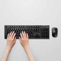 仕様 | ■セット構成:2.4GHzワイヤレスキーボード×1、2.4GHzワイヤレスIR LEDマウス×1、共通レシーバ×1、動作確認用単3形アルカリ乾電池×2、ユーザーズマニュアル×1 ■インターフェイス:USB ■コネクタ形状:USB(A)オス ■対応機種:USBポートを装備したWindows OS搭載機、PlayStation(R)3 ■対応OS:Windows 11、Windows 10、Windows 8.1、Windows 7、Windows Vista、Windows XP ※各OSの最新バージョンへのアップデートや、サービスパックのインストールが必要になる場合があります。 ■カラー:ブラック ■通信方式:GFSK方式 ■電波周波数:2.4GHz帯 ■電波到達距離:磁性体(鉄の机など)の上で使用する場合:約3m、非磁性体(木の机など)の上で使用する場合:約10m ※当社環境でのテスト値であり保証値ではありません。 ■キーボード・キータイプ:メンブレン ■キーボード・キー配列:日本語108キー ■キーボード・キーピッチ:19.0mm ■キーボード・キーストローク:4.0mm ■キーボード・電源:単3形アルカリ乾電池、単3形マンガン乾電池、単3形ニッケル水素2次電池のいずれか1本 ■キーボード・想定電池使用可能期間:約1年6カ月 ■キーボード・カラー:ブラック ■キーボード・外形寸法:幅452.0mm×奥行138.0mm×高さ29.6mm(スタンド含まず)/幅452.0mm×奥行138.0mm×高さ41.0mm(スタンド時) ■キーボード・質量:約554g ※電池を含まず ■マウス・読取り方式:光学センサー方式 ■マウス・分解能:1000カウント ■マウス・射出光線種類:不可視波長域 ■マウス・LED色:不可視光(赤外線) ■マウス・ホイール数:1個 ■マウス・ボタン数:3個 ■マウス・レシーバ収納:○ ■マウス・電源:単3形アルカリ乾電池、単3形マンガン乾電池、単3形ニッケル水素電池のいずれか1本 ■マウス・連続動作時間:約266時間 ■マウス・連続待機日数:約1041日 ■マウス・想定電池使用期間:約554日 ※1日8時間のパソコン操作中5%をマウス操作に割り当てた場合 ■マウス・カラー:ブラック ■マウス・外形寸法:幅59.0mm×奥行99.8mm×高さ39.0mm ■マウス・質量:約52g ※電池を含まず ■レシーバー・外形寸法:幅18.0mm×奥行13.1mm×高さ5.7mm ■レシーバー・質量:約2g ■保証期間:6カ月間 |