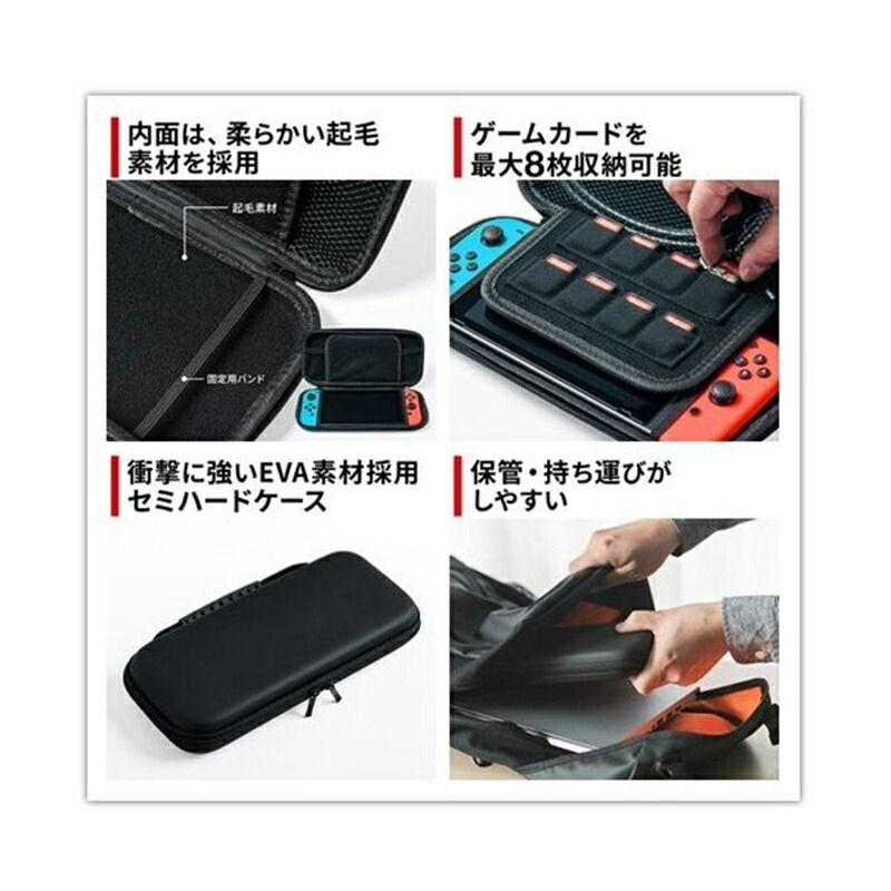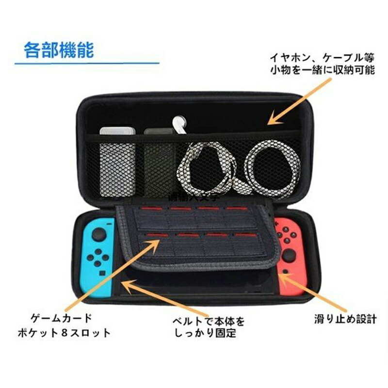 | Switch本体・Joy-Con・ゲームカードなどのアクセサリーを1つにまとめて持ち運びに便利! 画面保護シートもセット商品で、優れた保護機能と収納力を兼ね備えた収納ケースです。 【上質素材採用】 衝撃に強いEVA素材を使用したセミハードタイプです。表面はPU張りで水に強く汚れも湿った布で簡単に落とせます。 内側は柔らかいクッション材を使用、本体固定用の伸縮性バンドもデザインの一つで、ゲーム機がしっかり固定されて落下対策にもなります。 【抜群な収納力】 ゲーム機本体はもちろん、Joy-Conも同時に収納できゲームカードも入ります(8枚)。 大きめのポケット付きで、ケーブルやイヤホンなどのアクセサリーの収納が容易です。 旅行先や出張先に持ち運びが便利です。 【使い心地抜群】 本体にセットしたJoy-ConのZL・ZRボタンの突起もスッキリ収まるデザインです。 ストラップ付きで、持ち運びが便利です。 |