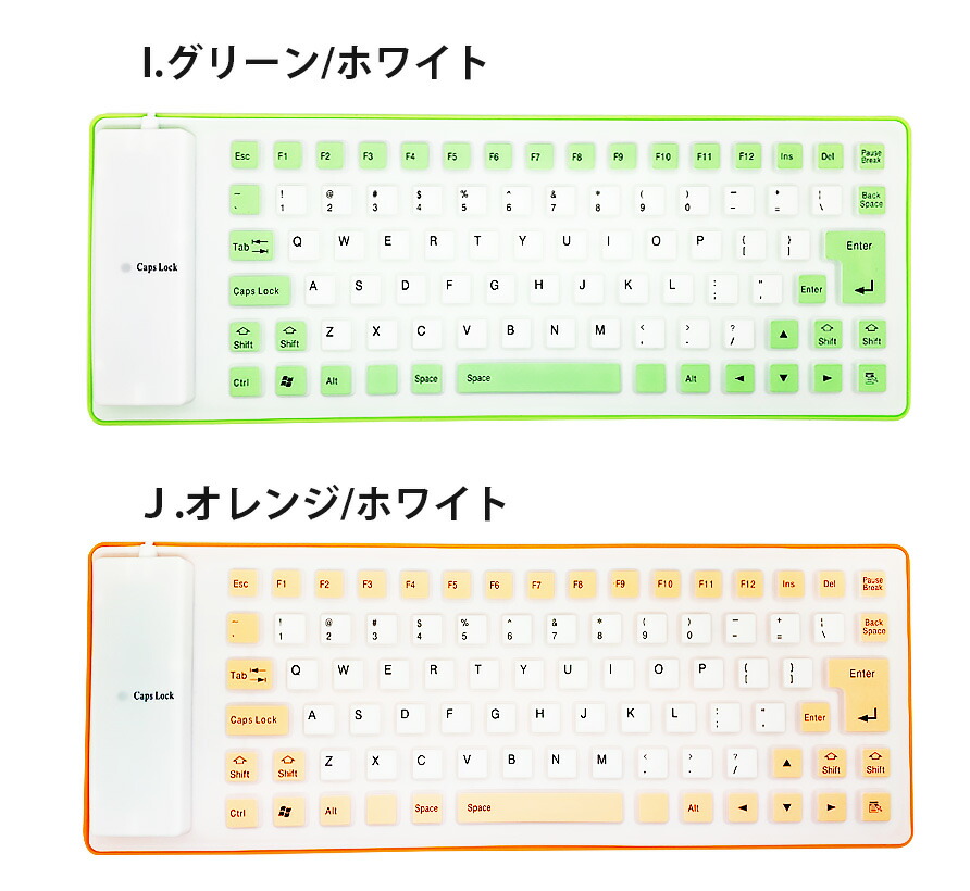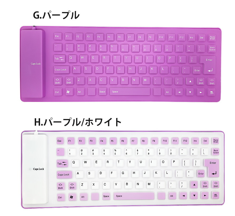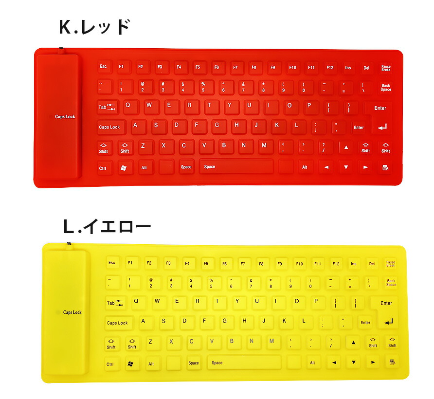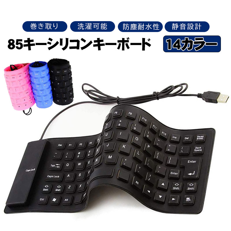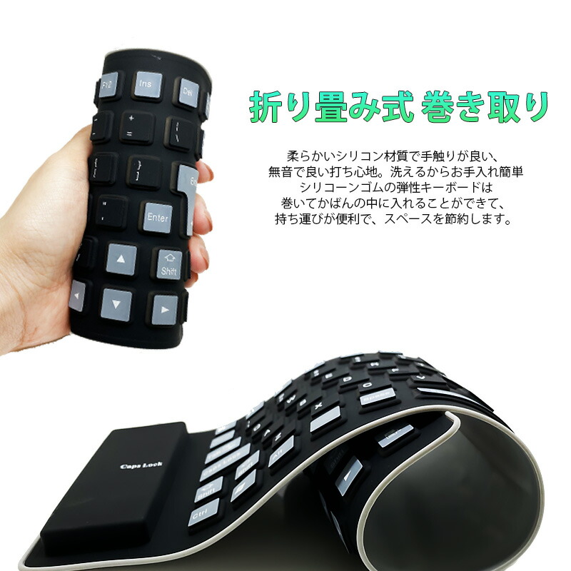 | 85キー シリコンキーボード USB 有線 折りたたみ 巻き取り 柔らかい 英語配列 薄型 軽量 携帯 コンパクト |