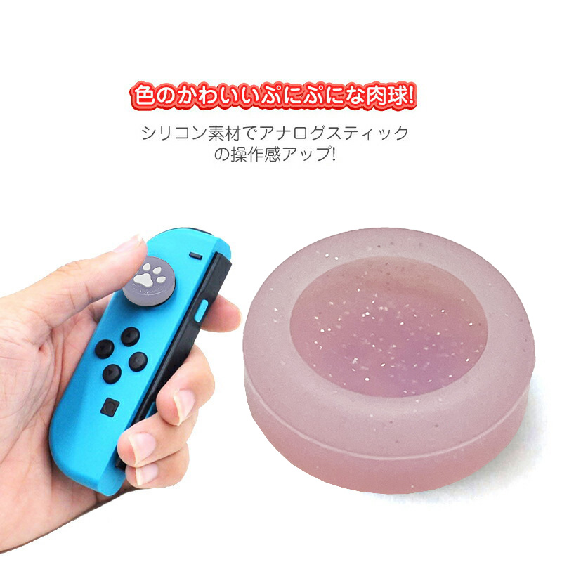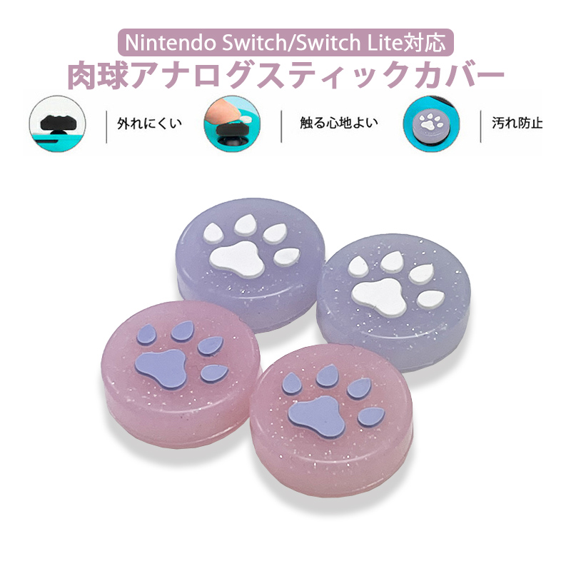 | Switch 有機ELモデル Lite対応 アナログスティックカバー 肉球 猫 ピンク パープル ラメ 各色2個 OLED |