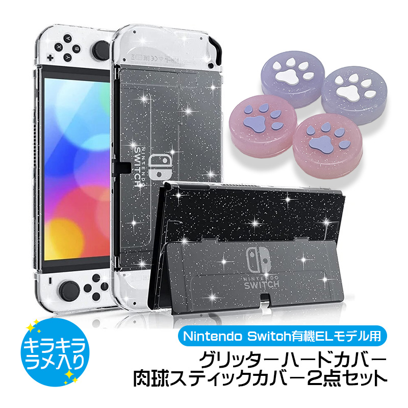 | Nintendo Switch 有機ELモデル 本体ケース 3点セット グリッターソフトカバー スティックカバー 画面保護フィルム |