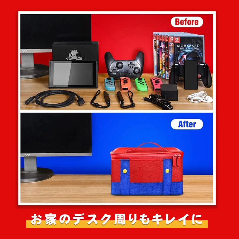 | 任天堂スイッチの本体と周辺機器をまるごと収納できる!大容量の収納ケースです。 外観がとても可愛らしいデザインで、長さが違う二組ベルクロが付いてます。お使い慣れよりバッグ内部の配置を変更することができます。 スイッチ用のこのバッグが一個あれば、Switch本体及びアクセサリーを簡単的に分類して、収納できます。カードなどの小さいものの紛失を有効的に防止し、空間も大幅に節約し、部屋の片付けにも大変助かります。小物を収納できるメッシュポケットなどその他の収納スペースも充実。 このバッグは防水防塵の素材を採用してます。水や埃から、全面的に内部の機器やアクセサリーを守ります。また、ハンドルの縫い付けも丈夫です。耐久性の心配がありません。 とても軽く、持ち運びやすいです。プレゼントとしても最適! Switchの通常モデルと有機ELモデル、どちらにも対応する兼用デザインだから、新・旧モデルを問わずお使い頂けます。 |