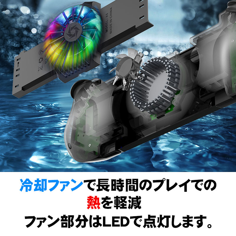 | ・製品モデル:X5 ・サイズ:183.9×86.6×46.8mm ・重量:約480g ・持続使用時間:20h ・バッテリー容量:600mAh ・対応機種:Android9.0以降/iOS13.4以降/Nintendo Switch |