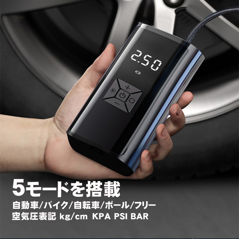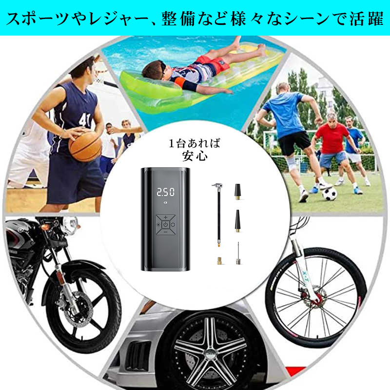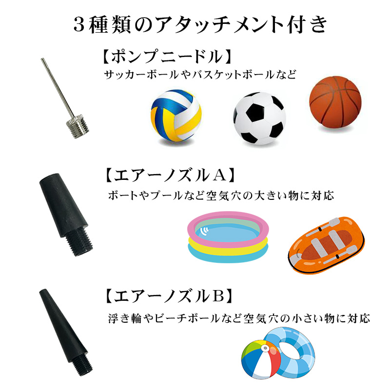 | ※商品到着後、ご使用前に充電を行ってからご使用ください。 ※充填出来る空気量は物によって異なります。規定の空気圧をご確認の上、空気を入れてください。 ※製造時期によりデザインや仕様に若干の変更がある場合がございます予めご了承ください。 ※画像は、ご覧になっているモニターやPCなどの環境により、実物と色が違って見える場合がございます。 ※製品の仕様・画像・パッケージは、メーカー側から予告なく変更される場合があります。 |
