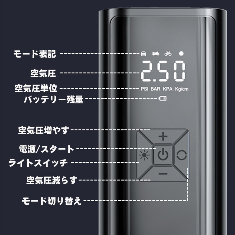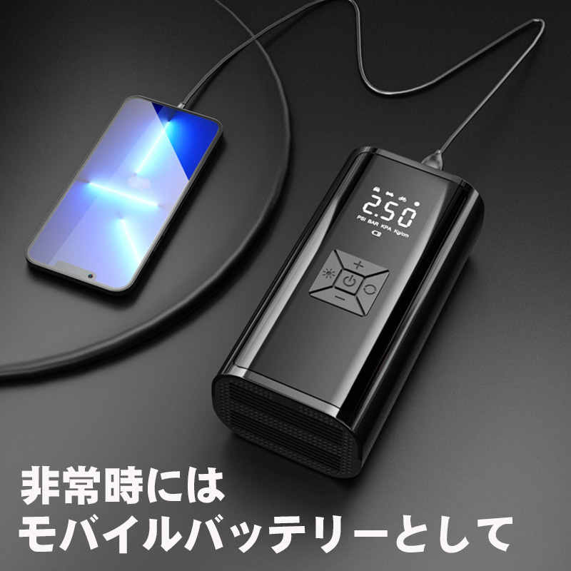 | マルチエアーポンプ 空気入れ 大容量バッテリー ポータブル エア-コンプレッサー [EG216] 自動車 自転車 レジャー用品 アウトドア ブラック |
