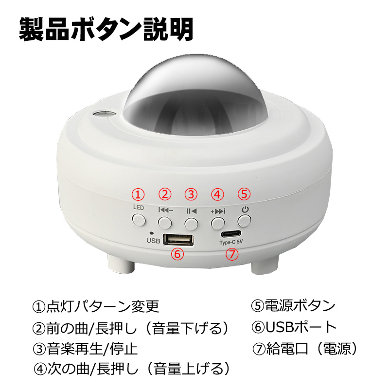| プラネタリウム[XY-899] スピーカー付き スターライトプロジェクター 家庭用 Bluetooth&USBメモリー音楽再生 子供 天井 星空ライト 寝かしつけ |