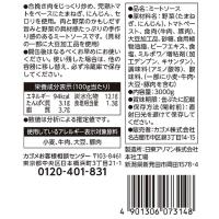 原材料:野菜(たまねぎ、にんじん)、トマトペースト、食肉(牛肉、豚肉)、大豆加工品、砂糖、食用植物油脂、ビーフエキス、食塩、ミルポワ/増粘剤(加工デンプン、キサンタン)、調味料(アミノ酸等)、酸味料、(一部に小麦・牛肉・大豆・豚肉を含む)