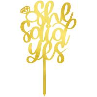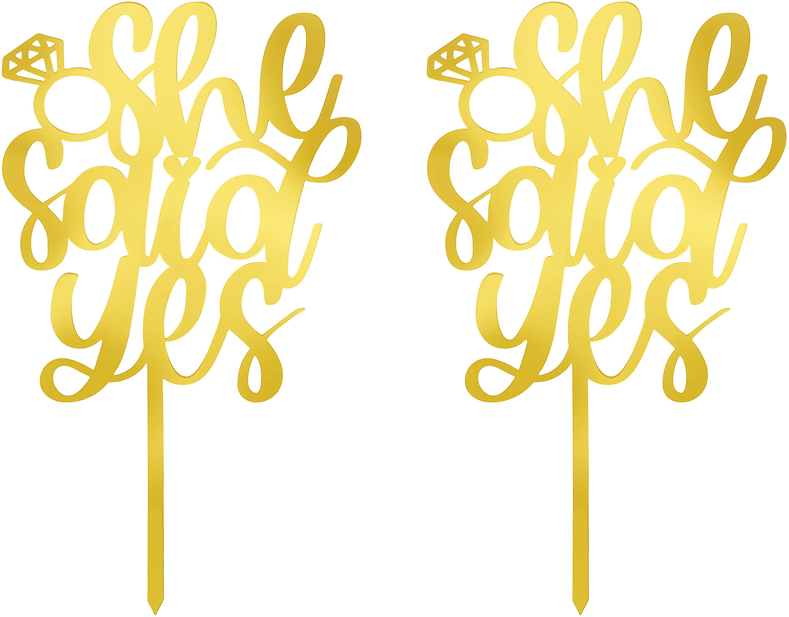 商品名:She Said Yes - ラブテーマ ゴールドケーキトッパー プロポーズ/ウェディング/ブライダルシャワー/記念ケーキ用 (2個パック)