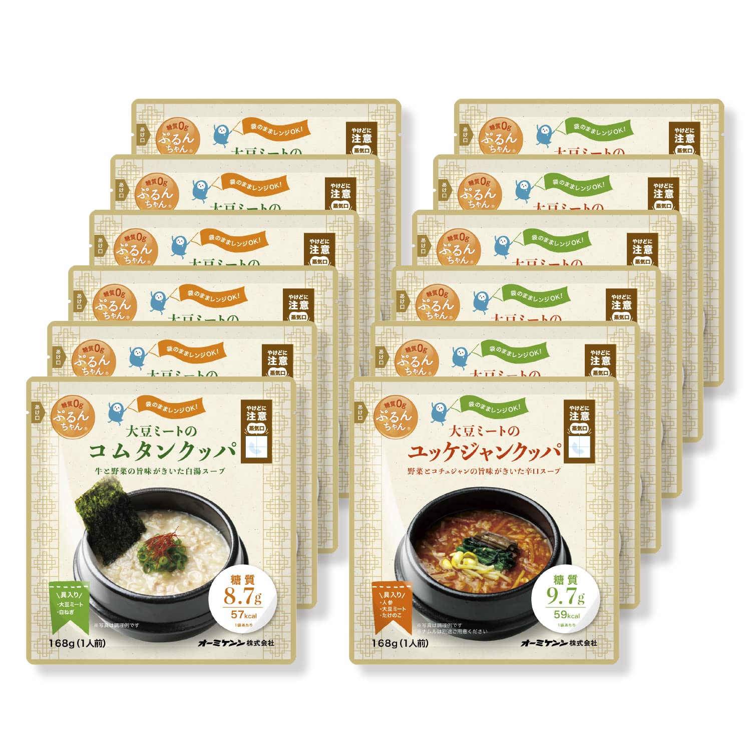 タイパ レンジで90秒 糖質0gぷるんちゃん 大豆ミートのコムタンクッパ6袋+ユッケジャンクッパ6袋