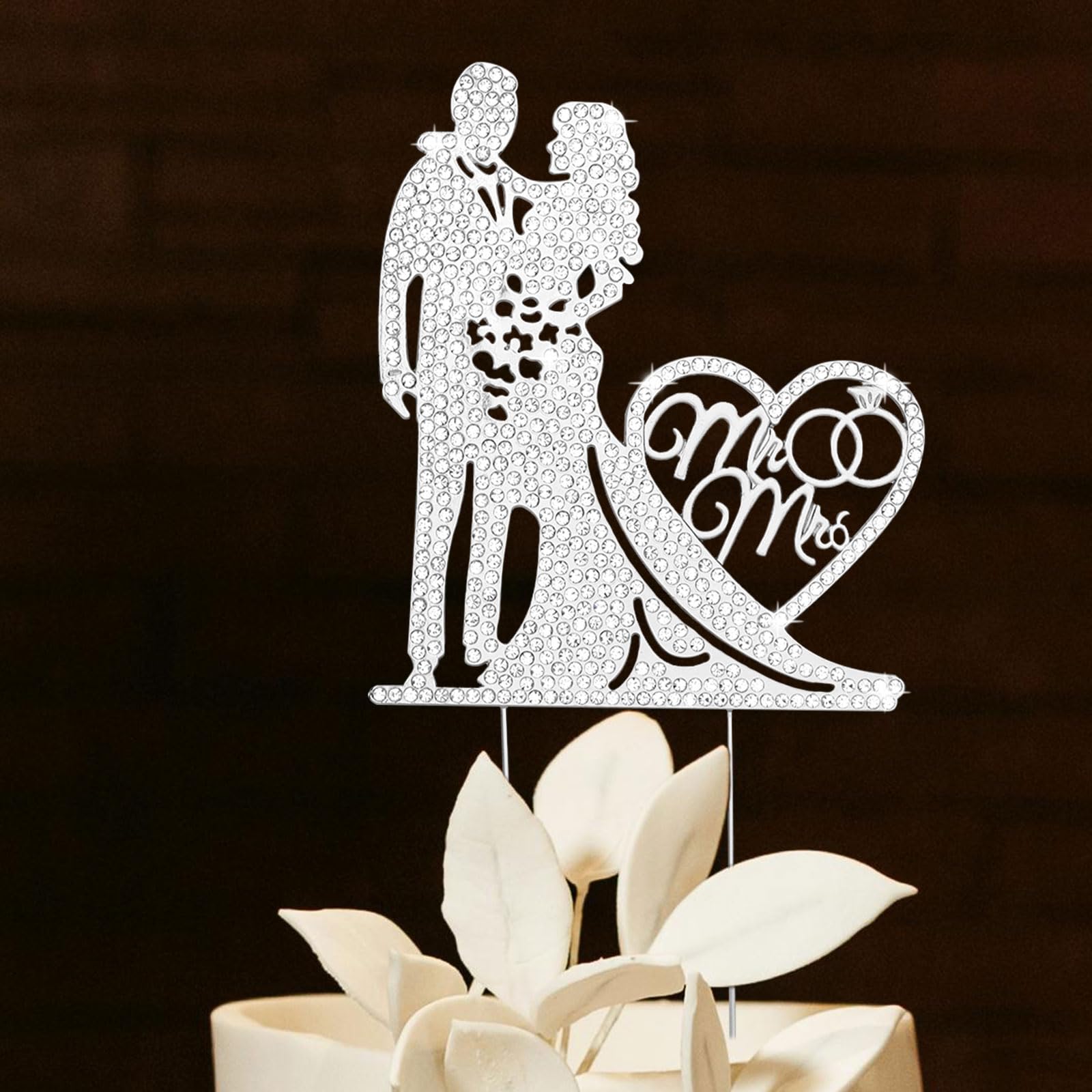 GAFATORY ウェディングケーキトッパー ラインストーンメタル Mr and Mrs ケーキトッパー ウェディング 新郎新婦 ブライダルシャワー