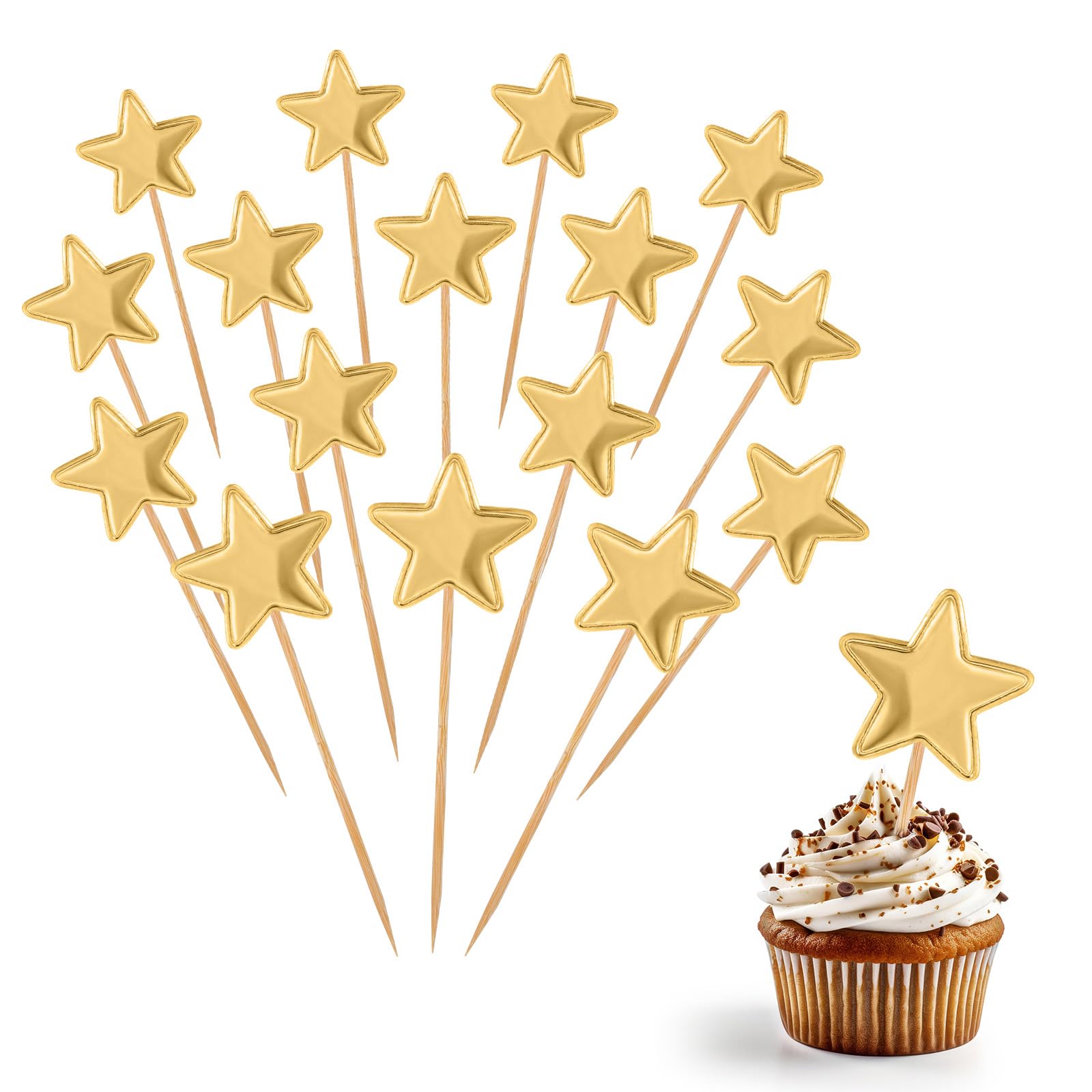 ウォームヒント:スターカップケーキトッパースティックは装飾目的のみです。食べられません。オーブンや電子レンジでは使用しないでください。