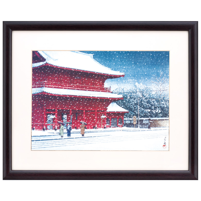 版画複製 川瀬巴水 作品 増上寺の雪 版画複製 風景画 複製画 雪 日本風景画 額付き 壁掛け