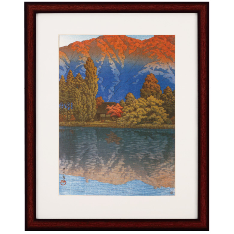 川瀬巴水 版画 作品 裏磐梯青沼の朝 版画複製 風景画 複製画 水辺の風景画 日本風景画 額付き 壁掛け