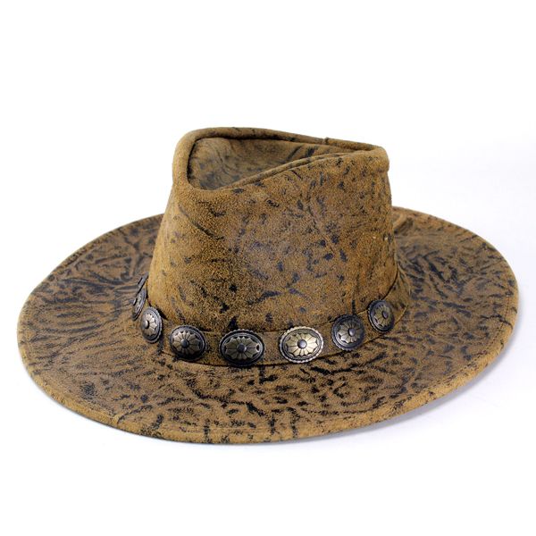 カウボーイハット 帽子 レザーハット ヘンシェル テンガロンハット ユーズド加工 コンチョ アメカジ ブラウン