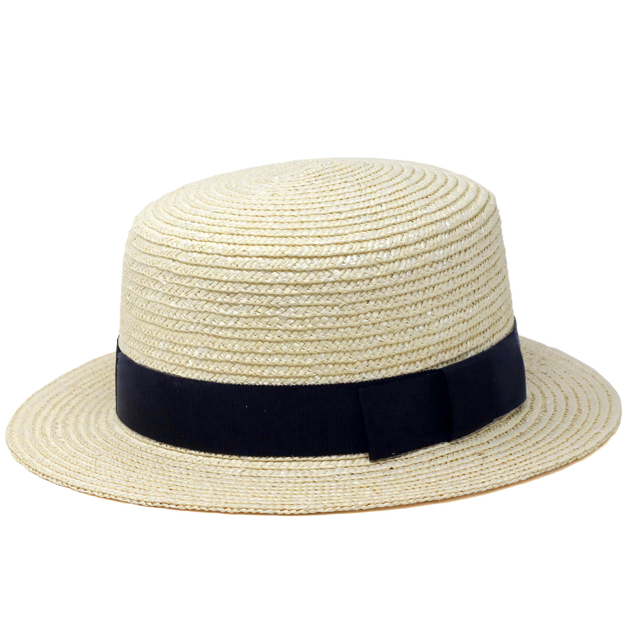 ストローハット メンズ レディース 春夏 麦わら帽子 天然繊維 ブリーチカラー カンカン帽 オフホワイト 黒リボン
