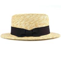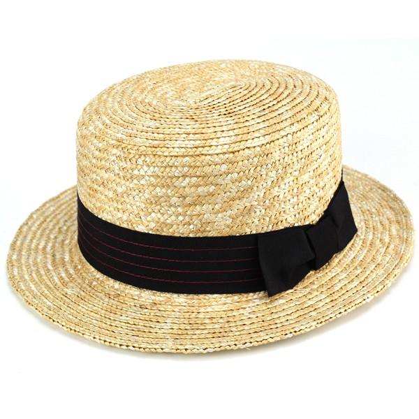 春夏 麦わら帽子 ストローハット メンズ レディース 天然繊維 ブリーチカラー カンカン帽 生成 黒リボン