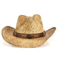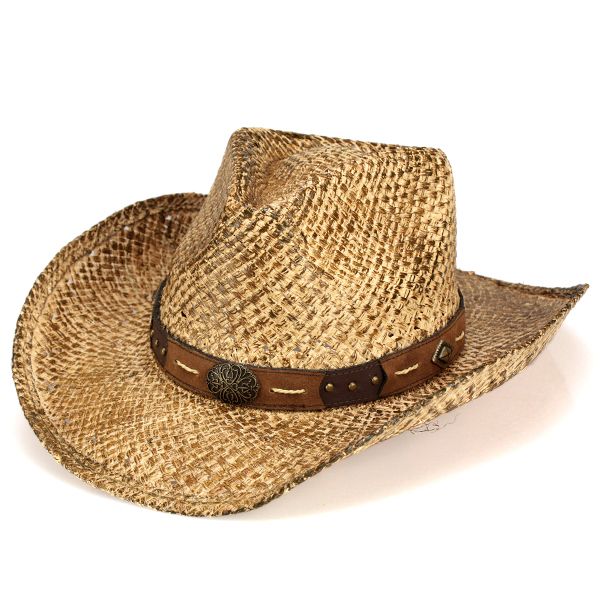 ストローハット メンズ レディース ヘンシェル カウボーイ ラフィア コンチョ付 レザーベルト テンガロンハット 春夏 ラフィアハット ナチュラル