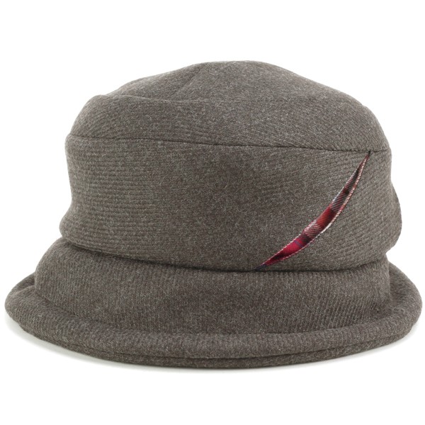 秋冬 クロッシェ チェック 婦人 レディース ウールカルゼ 日本製 大人 サイズ調節可 ブラウン