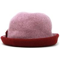 | 色味【ワイン】 | 本体は彩度の低いピンク。つば部分とリボンはワインレッド。リボンバックル部分はベージュ、黒、オレンジのチェック。 | |