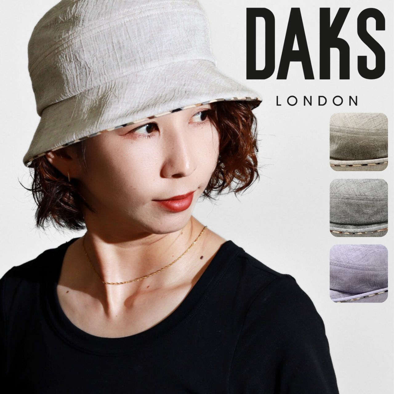 DAKSという名前はスタイリッシュでエレガンスと同意語であり、DAKSブランドの歴史は、シメオン・シンプソン氏がロンドン、ミドルセックスストリートに小さなテーラーを創業した1894年まで遡ります。ロンドンのオールドボンドストリートにあるDAKSの旗艦店では、紳士、婦人の上質な仕立て服やアクセサリーを専門に扱い、DAKSは今では英国のブリティッシュラグジュアリーブランドの一つと評されています。1976年に紹介されたハウスチェックでDAKSは世界的に有名になり、衣料品や小物に用いることで国際的にブランドのシンボルとなりました。世界的老舗ブランドが提案する帽子をお楽しみください。