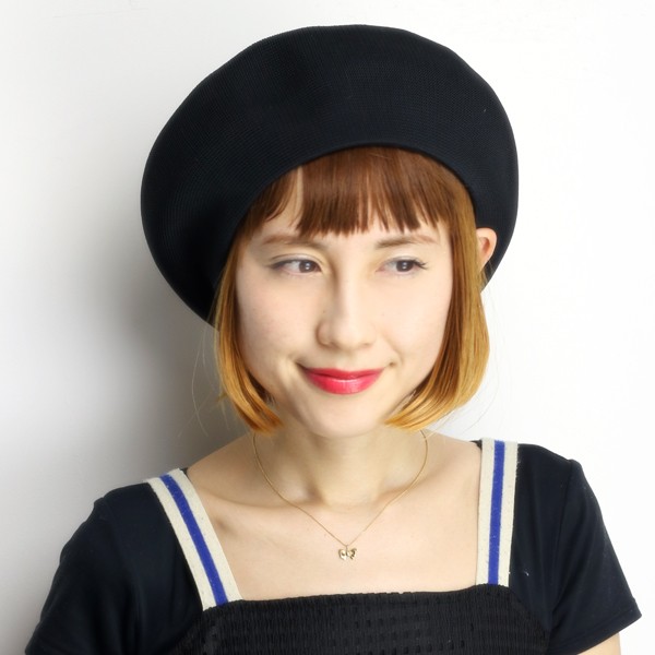 ベレー帽 春 夏 帽子 レディース 大きめゆったりシルエット 大きい サマーニット 通気性抜群 日本製 ブラック