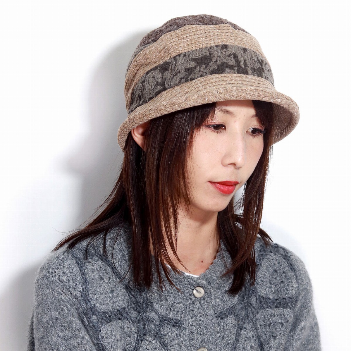ハット レディース 秋 帽子 冬 クロッシェハット 切り替えデザイン ネップ ジャガード elite chapeau ベージュ