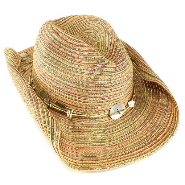 随所に貝殻が施された、リゾートテイストな仕上がりのテンガロンハットになります。ツバの縁部分にはワイヤーが入れてあり、ブリムを丸めればカウガールなテイストに♪広げればUVカットもできる上品なハットとしてお使いいただけます。毎日のコーデに差し色となる夏色カラーもポイントです。女性らしさもプラスされた、カウボーイハットを是非お楽しみください♪