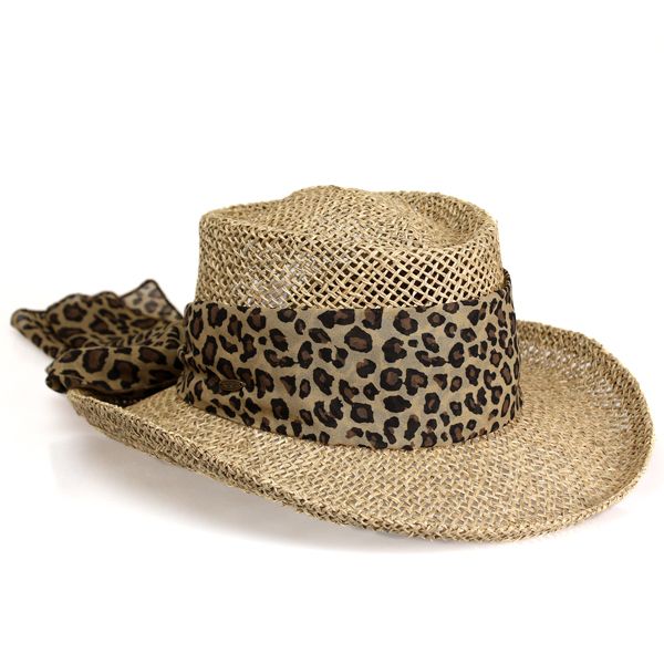 ウエスタンハット SCALA 春夏 レディース ギャンブラー ハット 帽子 レオパード ナチュラル 生成