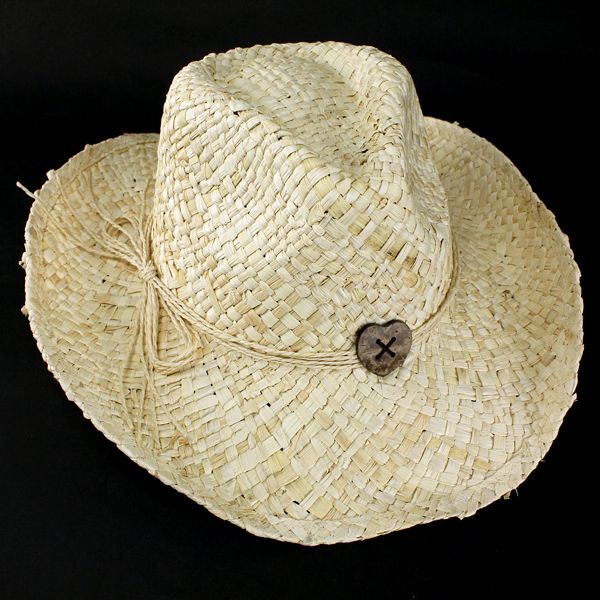 玉蜀黍(とうもろこし)の葉を100%使用した、テンガロンハットが登場!!丈夫でしっかりとしたつくりなので、被り心地は抜群★シンプルなデザインはコーディネートにも困らず、季節感を出したり、カラーアクセントのアイテムとしてお使いいただけます。フロントにはハートのコンチョがついており女性らしさもUP♪さらっとプラスするだけでレディライクなコーディネイトの完成です。この機会にぜひどうぞ!