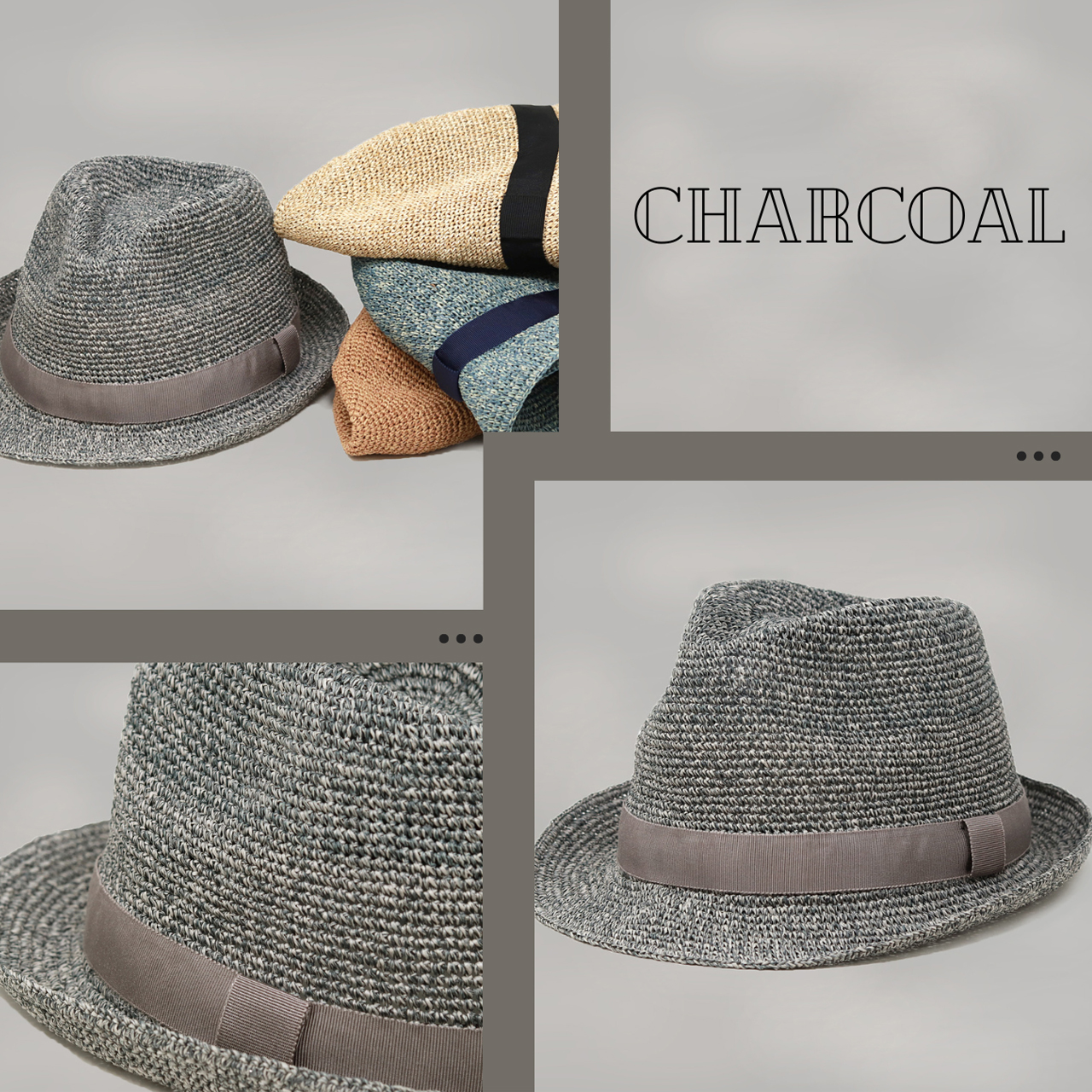 | 色味【チャコール】 | 本体は濃いグレーと薄いグレーのMIX。腰リボンは艶の有るグレーです。 | |