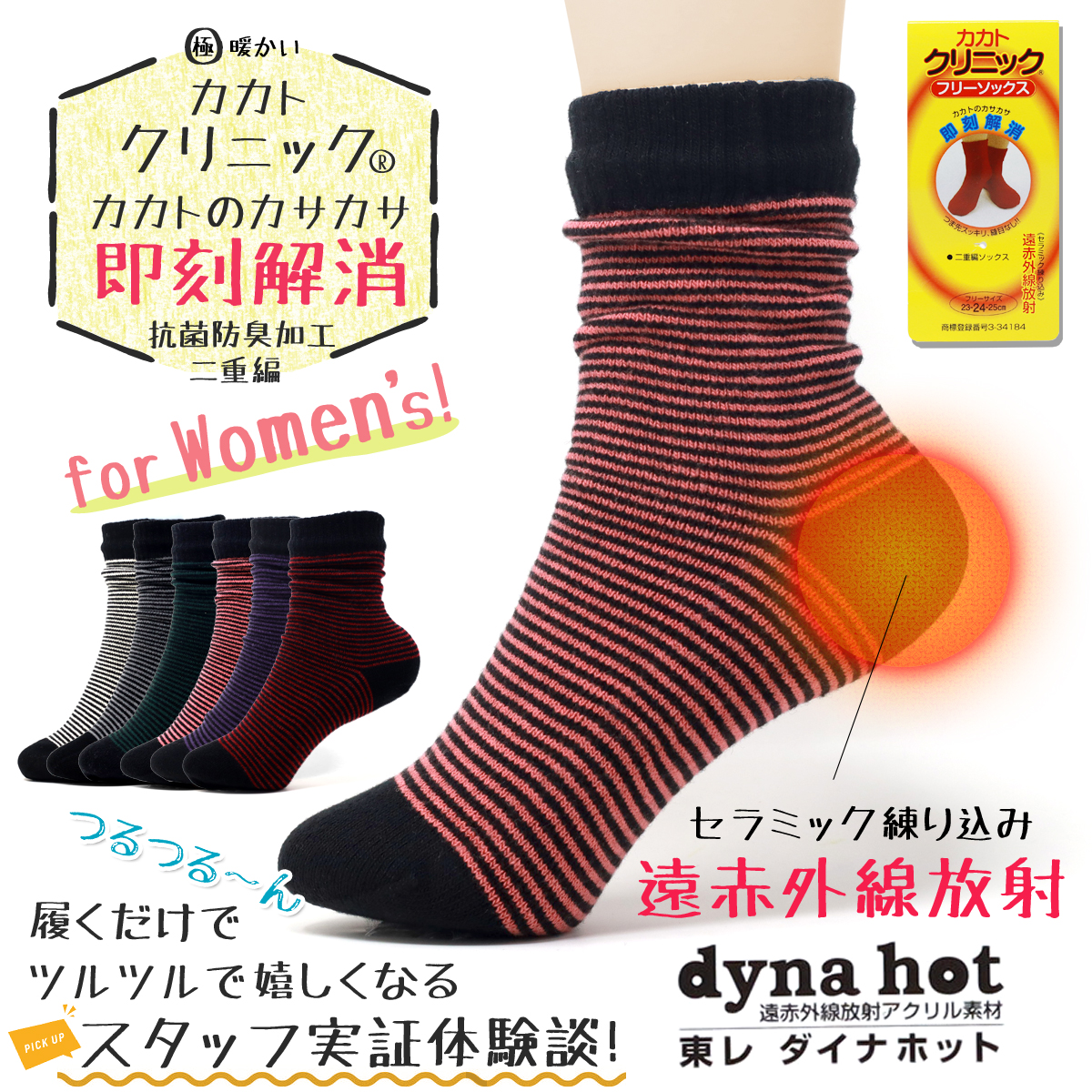 かかとつるつる 靴下 かかと ケア 履くだけ 保湿 角質除去 レディース 二重編み 暖かい 極暖 極厚 冷え性 うるおい かかとケア靴下 カカトクリニック ボーダー柄