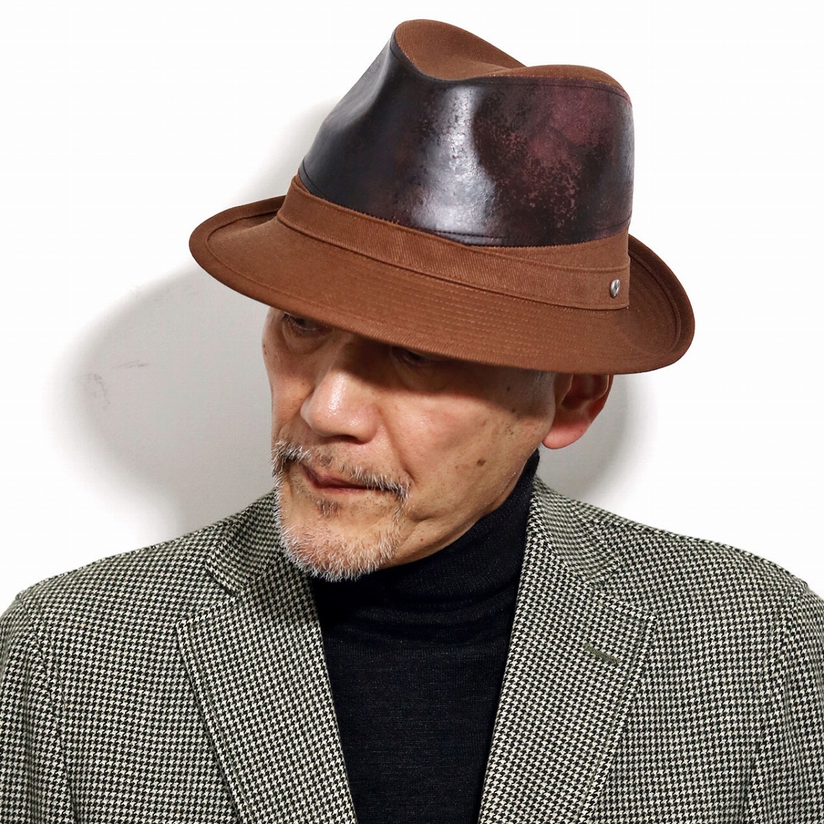ハット メンズ ミラ・ショーン mila schon 帽子 メンズ 中折れ帽子 メンズ フェイクレザー 中折れハット メンズ カツラギ 生地 ハット帽子 レンガ