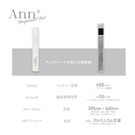 Ann Professional ハンディライト 充電式ポータブル ハンディLEDライト 6ヶ月保証 大容量バッテリー アルミボディー LED/UV対応 ジェルネイル ネイルアート ネイルライト デザイン セルフネイル ネイルサロン 硬化 アンプロフェッショナル 新品 送料無料