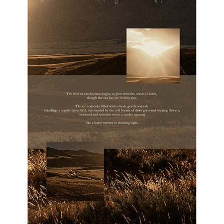 夜明け前の清らかな木々の香りにふわりと重なるローズの甘み。