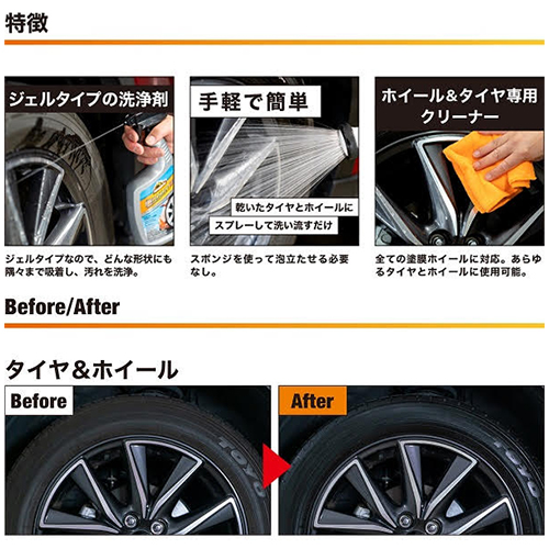 事前の水かけ、こすり洗い不要のホイール&タイヤクリーナー。